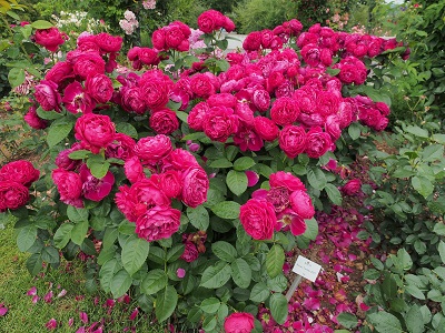 ZIEDS: Ziedi pildīti, lodveida, kas atgādina seno rožu ziedus. Ziedu krāsa sarkana ar violetu nokrāsu.