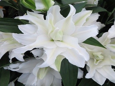 LILIJA AUSTRUMU / LILIUM ORAugstums: 110 cmZieds: balts, pildīts, smaržīgs