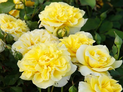 ZIEDS: skaisti, lieli, pildīti, ar vieglu medus-citrona aromātu, ziedu krāsa dzeltena, bagātīgi zied