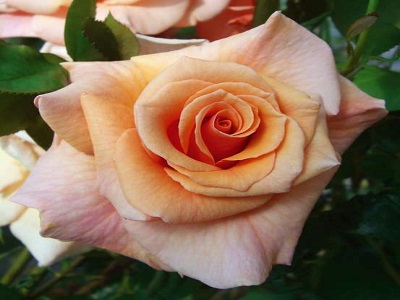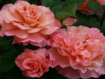 ZIEDS: Aprikožu rozā ar dzeltenu. Zieds liels, zied atkārtoti, bagātīgi ziedoša. Smarža ļoti maiga.